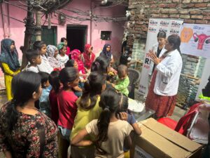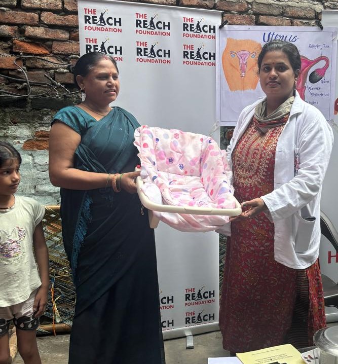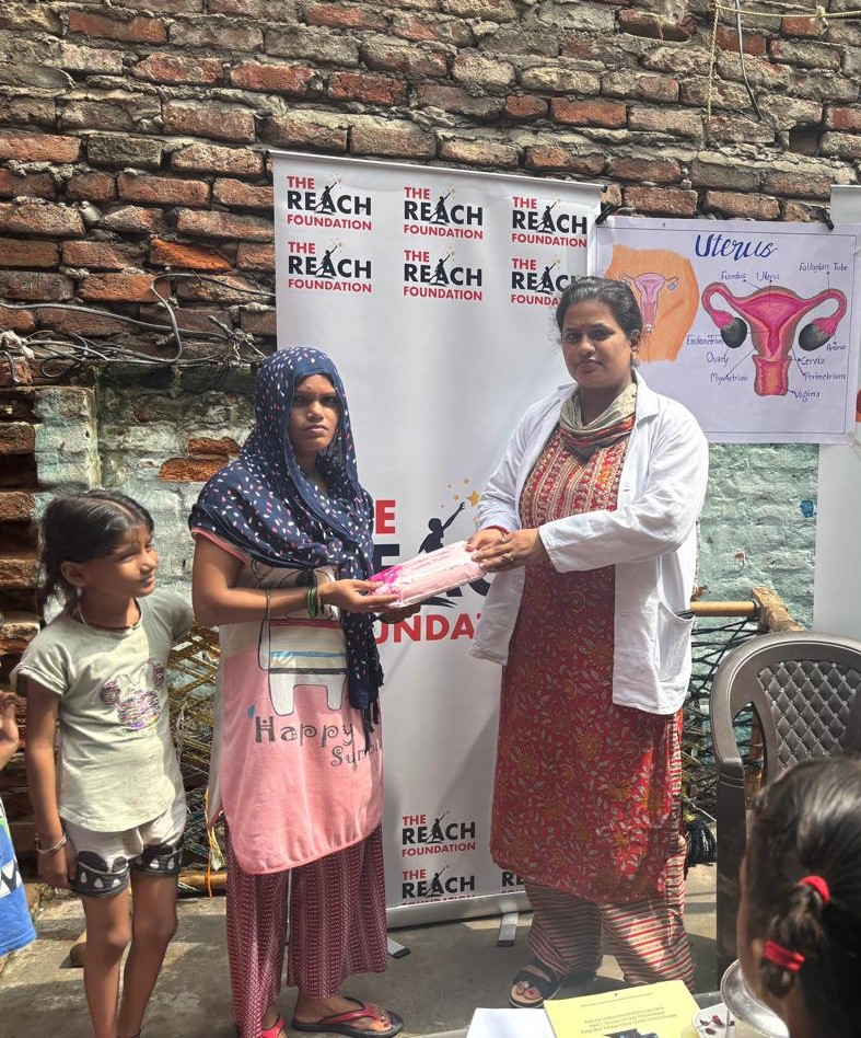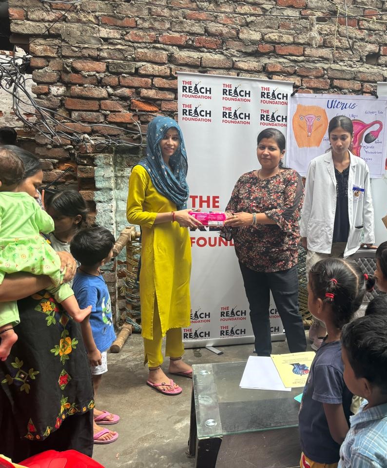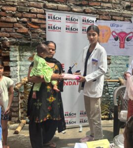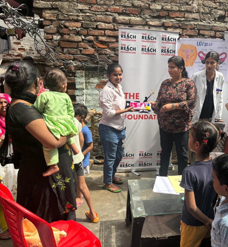 The Reach Foundation organized an awareness session on Polycystic Ovary Syndrome (PCOS) in a local village to educate women about the symptoms, prevention, and management of the condition. The session aimed to dispel myths, encourage early diagnosis, and promote healthy lifestyle choices. An informative session to raise awareness among women & young girls on menstrual hygiene and prevention of uterine cancer. As part of the initiative, sanitary pads were donated to the participants, addressing menstrual hygiene needs and emphasizing the importance of accessible hygiene products.